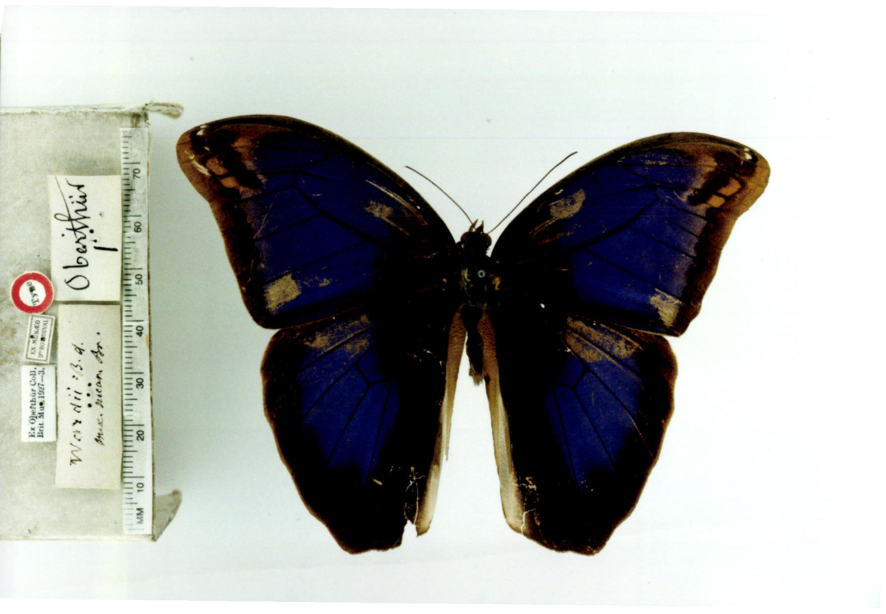 Eryphanis automedon amphimedon (TYPE of Eryphanis wardii Boisduval, 1870, TL: "Guatemala"; "Nicaragua"; [Brazil]) Photo taken by Gerardo Lamas and digitized by the Tropical Andean Butterfly Diversity Project, funded by the Darwin Initiative. Any use of this image, except for personal study, requires prior written consent of the housing institution. |
