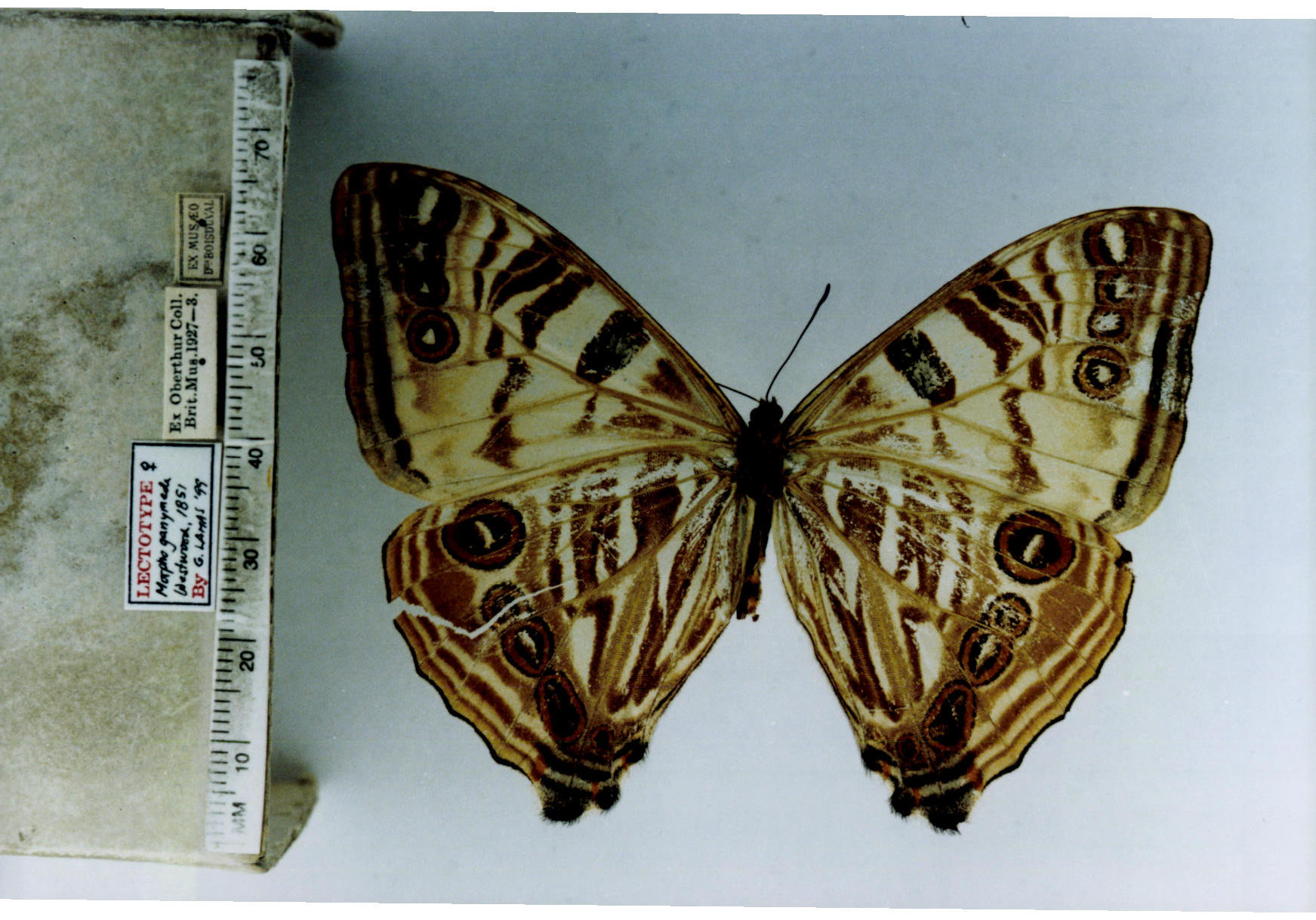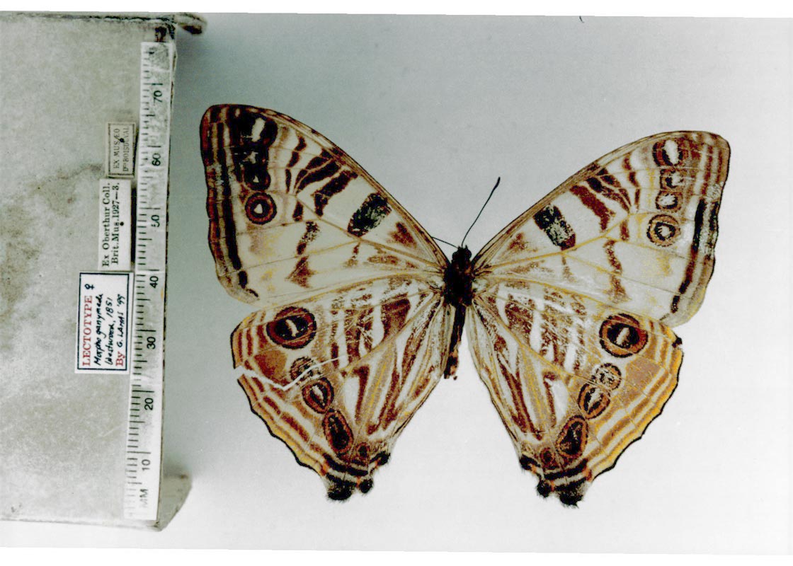 Morpho s. sulkowskyi (TYPE of Morpho ganymede Westwood, 1851, TL: Colombia) Photo taken by Gerardo Lamas and digitized by the Tropical Andean Butterfly Diversity Project, funded by the Darwin Initiative. Any use of this image, except for personal study, requires prior written consent of the housing institution. |
