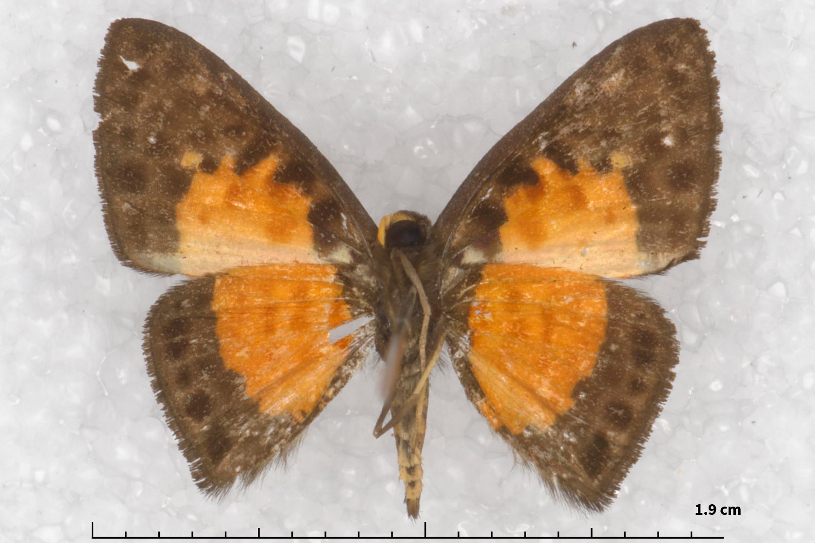 Symmachia basilissa Guyana: Acarai Mts./Ridge, Sipu River, 1 22.2'N, 58 57.9'W, 2500-3000 ft, 31-X-10-XI-2000, specimen No. USNMENT 00234069 [USNM].
